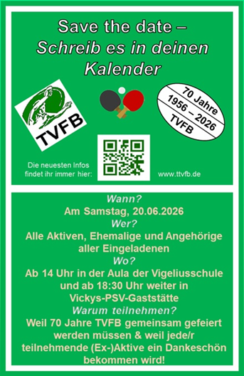 Wir begrüßen alle tischtennisinteressierten Kolleginnen und Kollegen auf den Seiten der Tischtennisvereinigung Freiburger Betriebe (TVFB).
